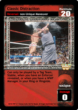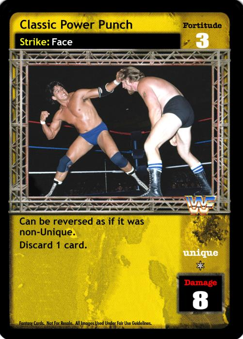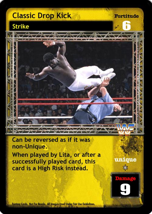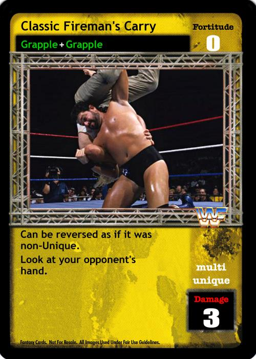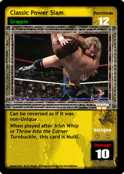 Can be reversed as if it was non-Unique. When played after Irish Whip or Throw Into the Corner Turnbuckle, this card is Multi.