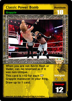 When you are not Kevin Nash or Vader, can be reversed as if it was non-Unique. This card is +1D for each WWF Grapple maneuver in your Ring. Draw up to 1 card.