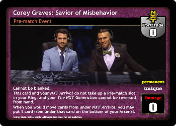 Cannot be blanked. This card and your NXT Arrival do not take up a Pre-match slot in your Ring, and your The NXT Generation cannot be reversed from hand. When you would move cards from under NXT Arrival, you may put 1 card from under that card on the bottom of your Arsenal.