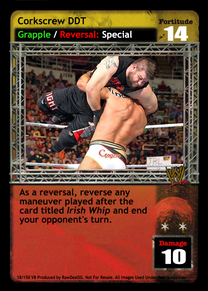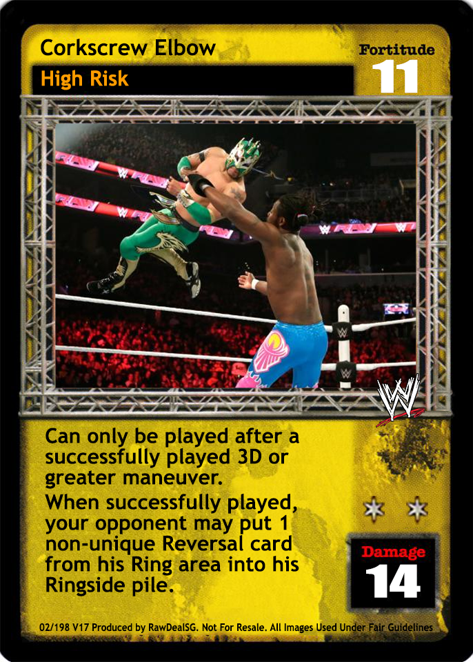 Can only be played after a successfully played 3D or greater maneuver. When successfully played, your opponent may put 1 non-unique Reversal card from his Ring area into his Ringside pile.