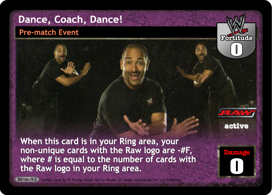 When this card is in your Ring area, your non-unique cards with the Raw logo are -#F, where # is equal to the number of cards with the Raw logo in your Ring area.