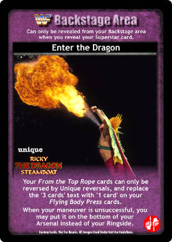 Your From the Top Rope cards can only be reversed by Unique reversals, and replace the '3 cards' text with '1 card' on your Flying Body Press cards. When your maneuver is unsuccessful, you may put it on the bottom of your Arsenal instead of your Ringside.