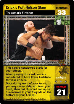 This card is considered blank for your effects. When playing this card, you are considered to have lower Fortitude for your effects. Once during each of your turns, you may reveal this card from your hand, then put this card and up to 1 maneuver in your Ringside on the bottom of your Arsenal.