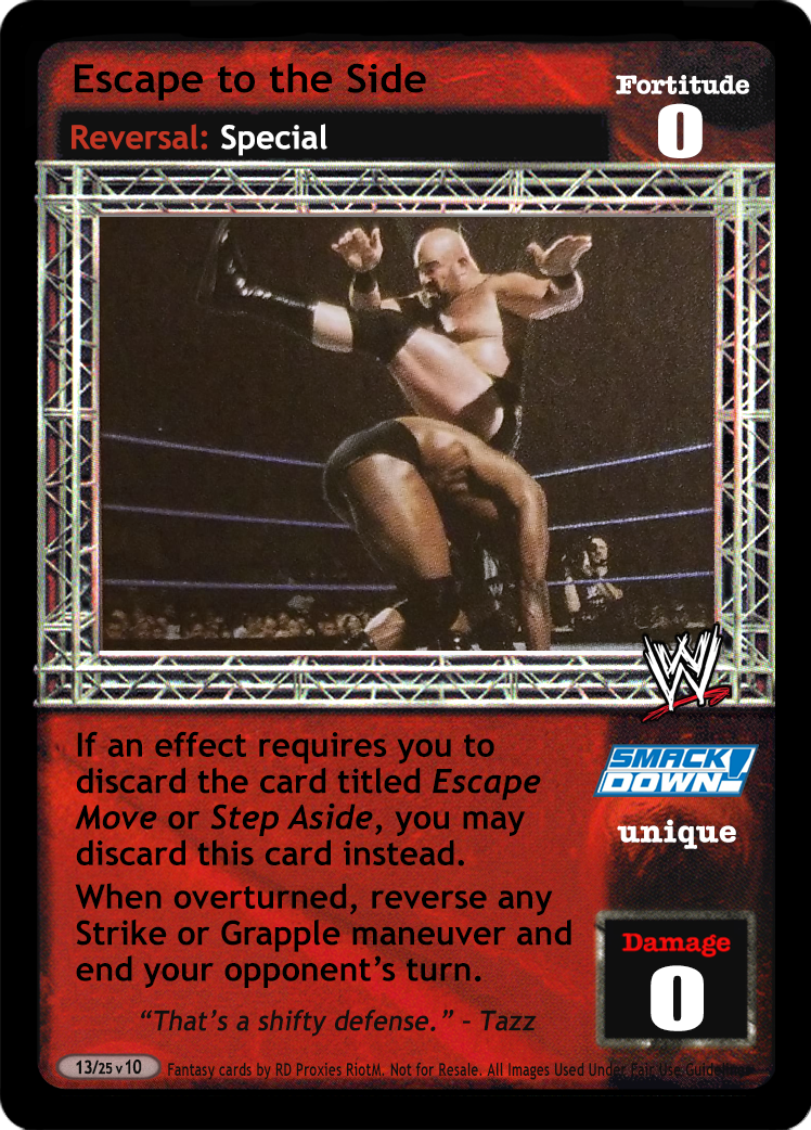 If an effect requires you to discard the card titled Escape Move or Step Aside, you may discard this card instead. When overturned, reverse any Strike or Grapple maneuver and end your opponent's turn.