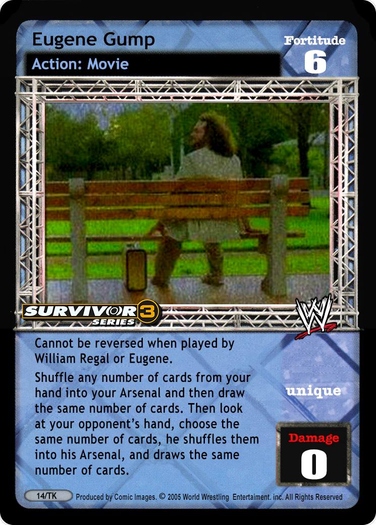 Cannot be reversed when played by William Regal or Eugene. Shuffle any number of cards from your hand into your Arsenal and then draw the same number of cards. Then look at your opponent's hand, choose the same number of cards, he shuffles them into his Arsenal, and draws the same number of cards.