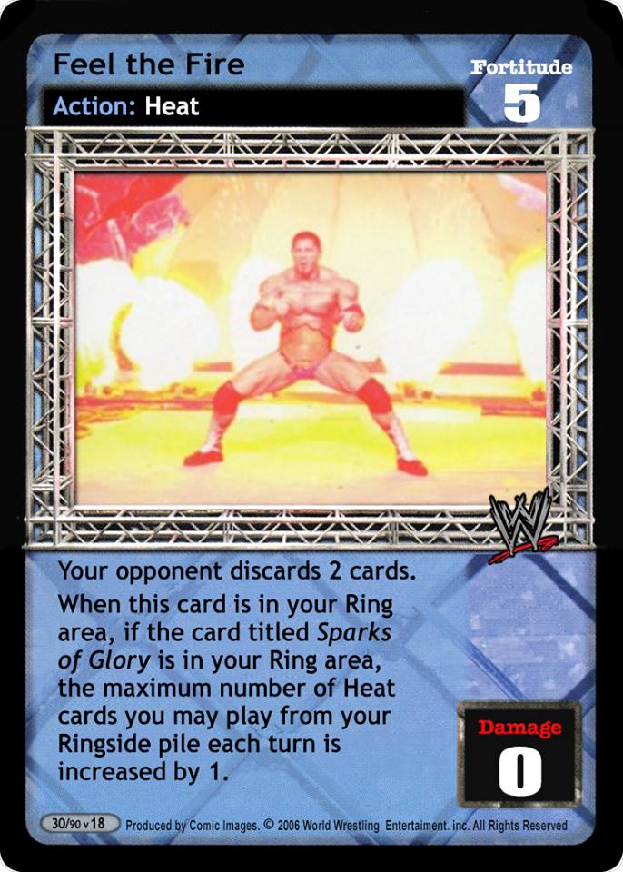 Your opponent discards 2 cards. When this card is in your Ring area, if the card titled Sparks of Glory is in your Ring area, the maximum number of Heat cards you may play from your Ringside pile each turn is increased by 1.