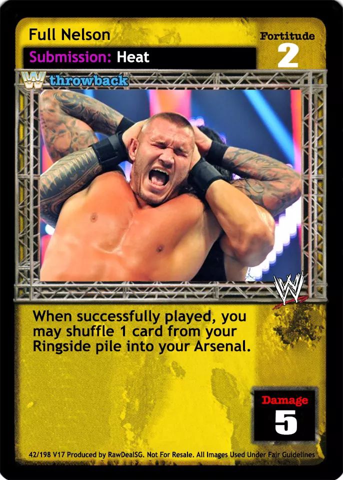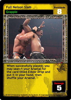 When successfully played, you may search your Arsenal for the card titled Elbow Drop and put it in your hand, then shuffle your Arsenal.
