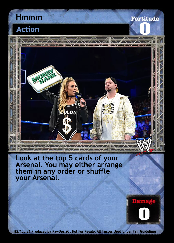 Look at the top 5 cards of your Arsenal. You may either arrange them in any order or shuffle your Arsenal.