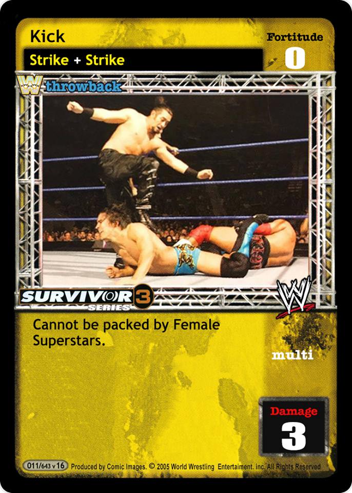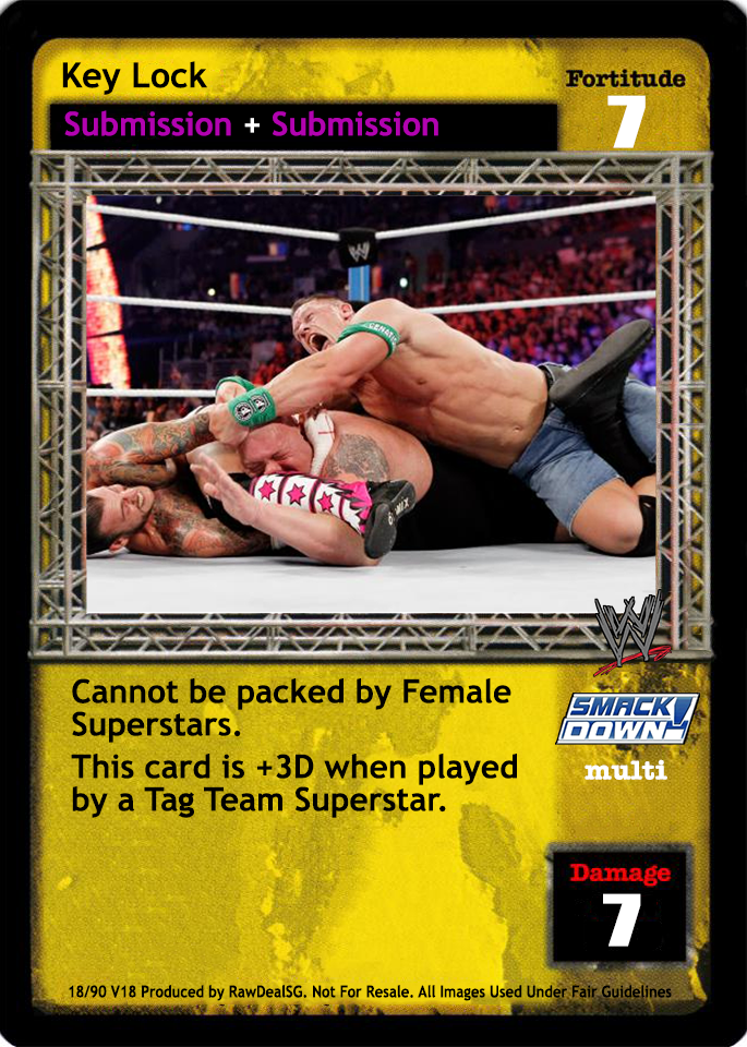 Cannot be packed by Female Superstars. This card is +3D when played by a Tag Team Superstar.