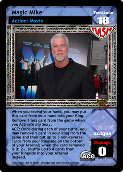 When you reveal your hand, you may put this card from your hand into your Ring. Remove 1 less card from the game when you Activate Big Sexy. ACE: Once during each of your turns, you may remove 1 card in your Ring from the game and then put up to 3 non-reversal cards from your Ringside on the bottom of your Arsenal; when the card removed is D: 2+, shuffle up to 4 cards from your Ringside into your Arsenal instead.