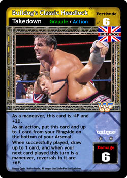 As a maneuver, this card is -10F and +3D and when played after a successfully played Grapple or Submission maneuver, can only be reversed from Arsenal. As a reversal, when played from hand, reverse any Grapple or Submission.