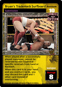 When played after a successfully played maneuver, cannot be reversed by non-Superstar-specific reversals from hand or Backlash. When this card is in your hand and you overturn cards, you may discard this card and 1 other card instead of overturning.