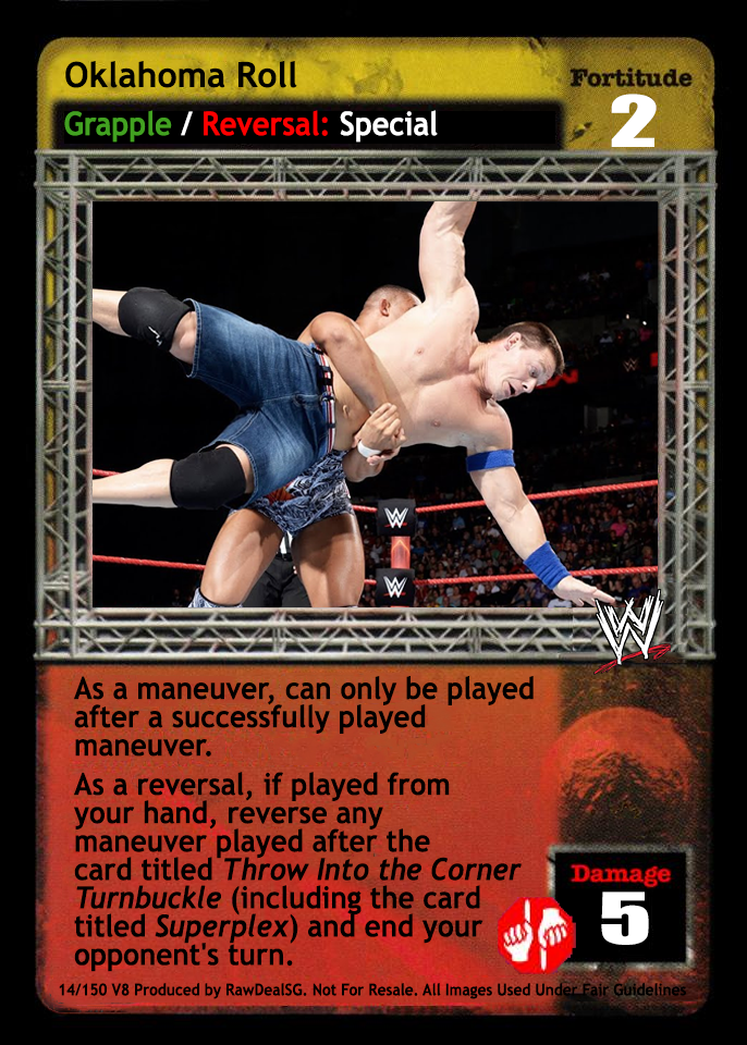 As a maneuver, can only be played after a successfully played maneuver. As a reversal, if played from your hand, reverse any maneuver played after the card titled Throw Into the Corner Turnbuckle (including the card titled Superplex) and end your opponent's turn.