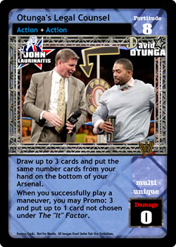 Draw up to 3 cards and put the same number cards from your hand on the bottom of your Arsenal. When you successfully play a maneuver, you may Promo: 3 and put up to 1 card not chosen under The 'It' Factor.