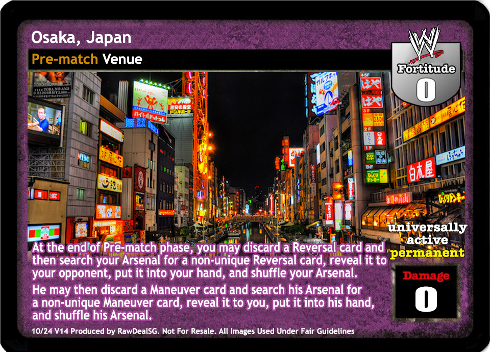 At the end of Pre-match phase, you may discard a Reversal card and then search your Arsenal for a non-unique Reversal card, reveal it to your opponent, put it into your hand, and shuffle your Arsenal. He may then discard a Maneuver card and search his Arsenal for a non-unique Maneuver card, reveal it to you, put it into his hand, and shuffle his Arsenal.