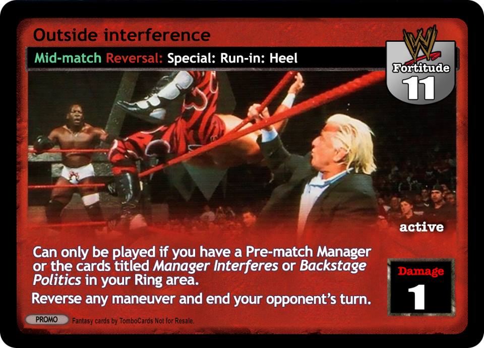 Can only be played if you have a Pre-match Manager or the cards titled Manager Interferes or Backstage Politics in your Ring area. Reverse any maneuver and end your opponent's turn.