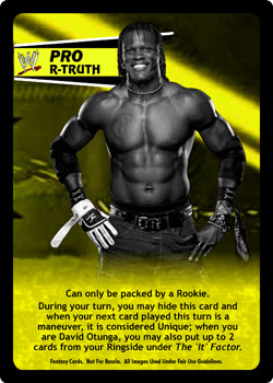 Can only be packed by a Rookie. During your turn, you may hide this card and when your next card played this turn is maneuver, it is considered Unique; when you are David Otunga, you may also put up to 2 cards from your Ringside under The 'It' Factor.