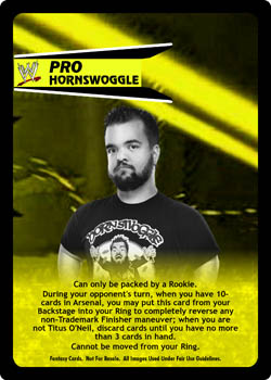 Can only be packed by a Rookie. During your opponent's turn, when you have 10- cards in Arsenal, you may put this card from your Backstage into your Ring to completely reverse any non-Trademark Finisher maneuver; when you are not Titus O'Neil, discard cards until you have no more than 3 cards in hand. Cannot be moved from your Ring.