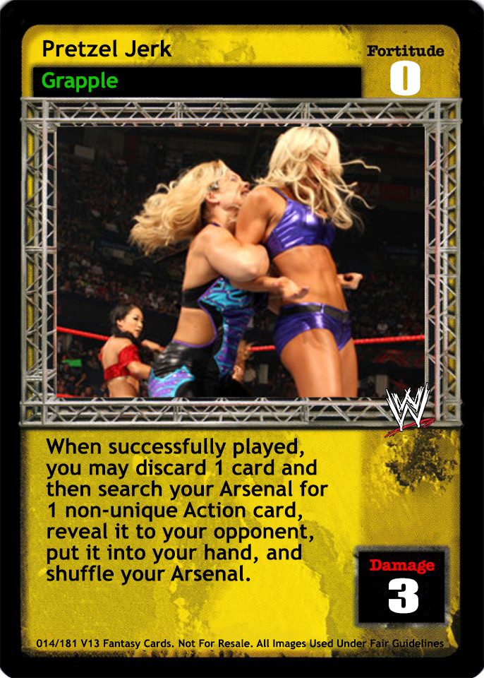 Can only be packed by a Rookie. During your turn when you successfully play a Grapple or High Risk maneuver, you may hide this card and shuffle 4 cards from your Ringside into your Arsenal; when the maneuver was a non-Multi High Risk, shuffle 2 additional cards. When you are Justin Gabriel, you may shuffle in 2 additional cards and draw 2 cards.