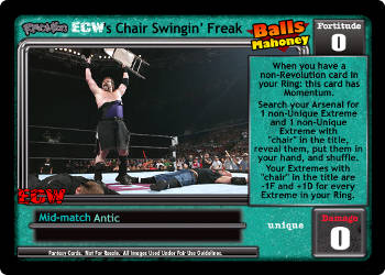 When you have a non-Revolution card in your Ring: this card has Momentum. Search your Arsenal for up to 1 non-Unique Extreme and 1 non-Unique Extreme with 'chair' in the title, reveal them, put them into your hand, and shuffle. Your Extremes with 'chair' in the title are -1F and +1D for every Extreme in your Ring.