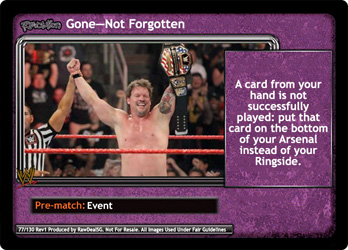 A card from your hand is not successfully played: put that card on the bottom of your Arsenal instead of your Ringside