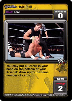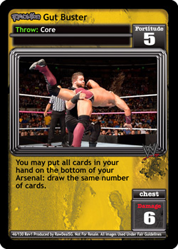 Put 1 card from your hand, up to 1 card from your Ringside, and up to 1 other card from your Ring on the bottom of your Arsenal.