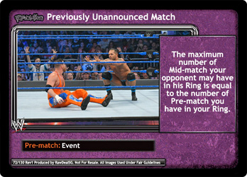 The maximum number of Mid-match your opponent may have in his Ring is equal to the number of Pre-match you have in your Ring.