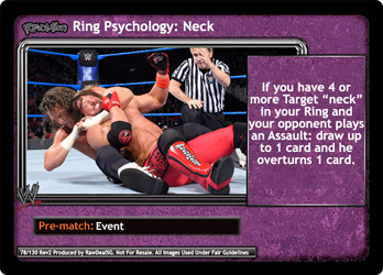 If you have 4 or more Target 'neck' in your Ring and your opponent plays an Assault: draw up to 1 card and he overturns 1 card.