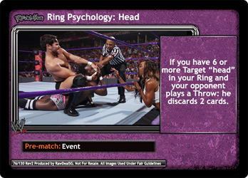 If you have 6 or more Target 'head' in your Ring and your opponent plays a Throw: he discards 2 cards.