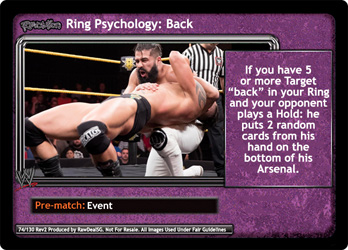 If you have 5 or more Target 'back' in your Ring and your opponent plays a Hold: he puts 2 random cards from his hand on the bottom of his Arsenal.
