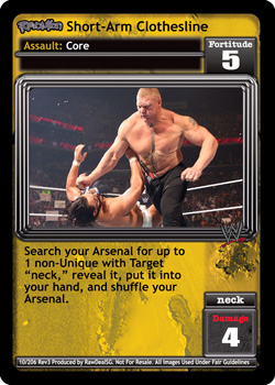Search your Arsenal for up to 1 non-Unique with Target 'neck,' reveal it, put it into your hand, and shuffle your Arsenal.