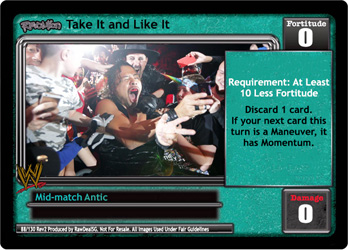 Requirement: At Least 10 Less Fortitude Discard 1 card. If your next card this turn is a Maneuver, it has Momentum.