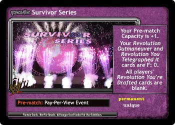 Your Pre-match Capacity is +1. Your Revolution Outmaneuver and Revolution You Telegraphed It cards are F: 0. All players' Revolution Hardcore Hell cards are blank.