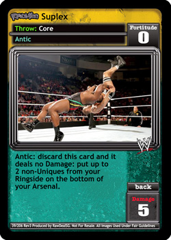 Antic: discard this card and it deals no Damage: put up to 2 non-Uniques from your Ringside on the bottom of your Arsenal.