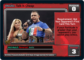 Requirement: Not Your Opponent's First Card This Turn If your Fortitude is greater than your opponent's: you cannot play Antics.