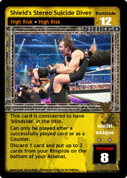 This card is considered to have 'blindside' in the title. Can only be played after a successfully played card or as a Counter. Discard 1 card and put up to 2 cards from your Ringside on the bottom of your Arsenal.