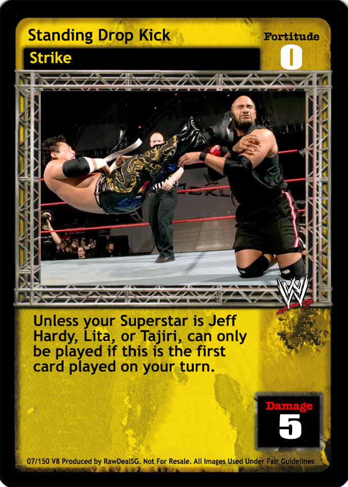 Unless your Superstar is Jeff Hardy, Lita, or Tajiri, can only be played if this is the first card played on your turn.