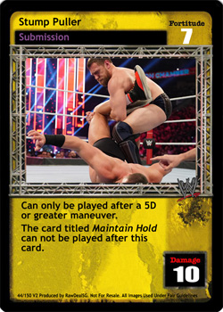 Can only be played after the card titled Irish Whip. When successfully played, if this card is not reversed from opponent's Arsenal, search your Arsenal for a card titled Hung Out to Dry, show it to your opponent, put it in your hand, then shuffle your Arsenal. If played from your hand, may reverse a maneuver played after the card titled Irish Whip.