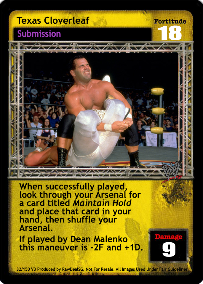 When successfully played, look through your Arsenal for a card titled Maintain Hold and place that card in your hand, then shuffle your Arsenal. If played by Dean Malenko this maneuver is -2F and +1D.
