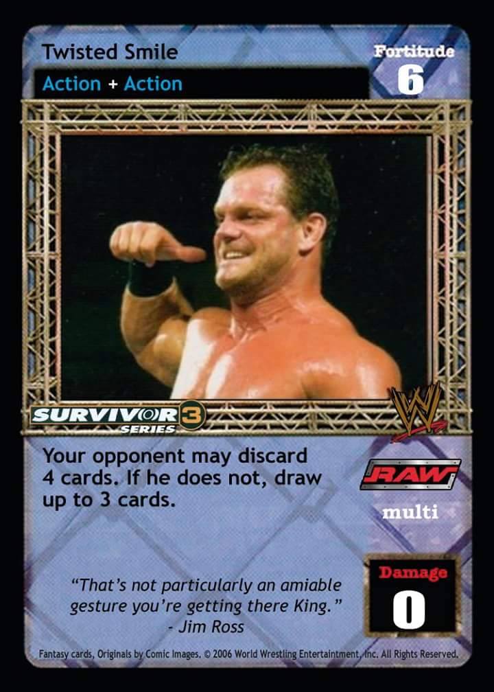 When played by Rikishi or X-Pac, this card is -4F. Draw 1 card. When this card is in your Ring area, your Strike maneuvers are +2D.