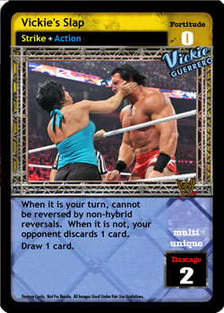 This card is -4F and +2 Stun Value for each of the following cards in your Ring area: Face Driver, Go-behind, Slap, Shoulder Thrust, Throw, Toss, or Vertical DDT Drop. Can only be played when you have at least 1 of those cards in your Ring area.
