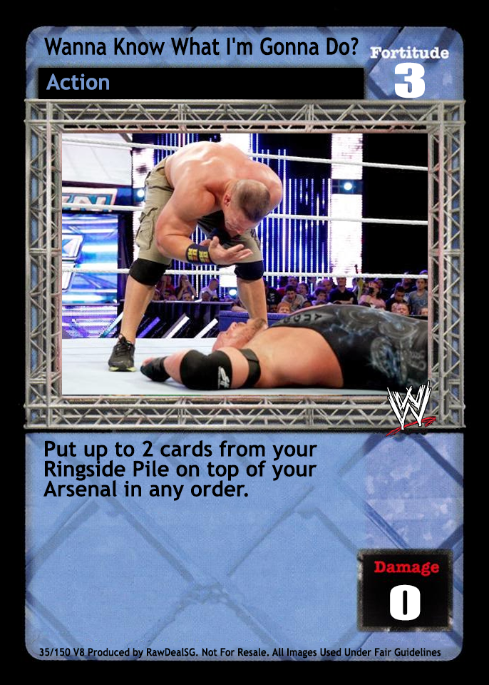Put up to 2 cards from your Ringside Pile on top of your Arsenal in any order.