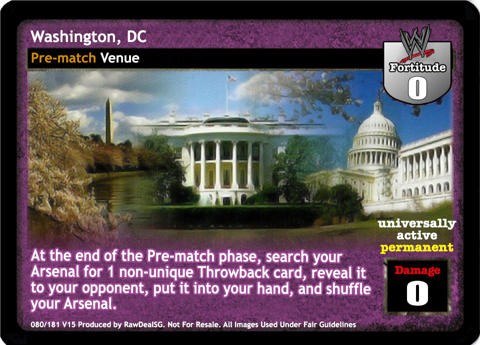 At the end of the Pre-match phase, search your Arsenal for 1 non-unique Throwback card, reveal it to your opponent, put it into your hand, and shuffle your Arsenal.