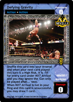 Shuffle this card into your Arsenal and when your next card played this turn is a High Risk, it is -1F for every card under NXT Arrival and you may ignore the 'Can only be played after...' text. When NXT Arrival is not in your Ring and this card is unsuccessfully played, you may draw 1 card.