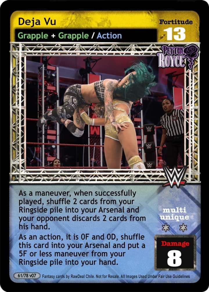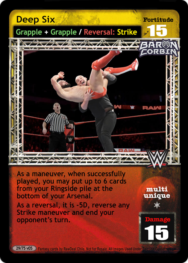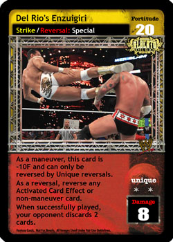 As a maneuver, when successfully played, you may put up to 6 cards from your Ringside pile at the bottom of your Arsenal. As a reversal, it is -5D, reverse any Strike maneuver and end your opponent's turn.