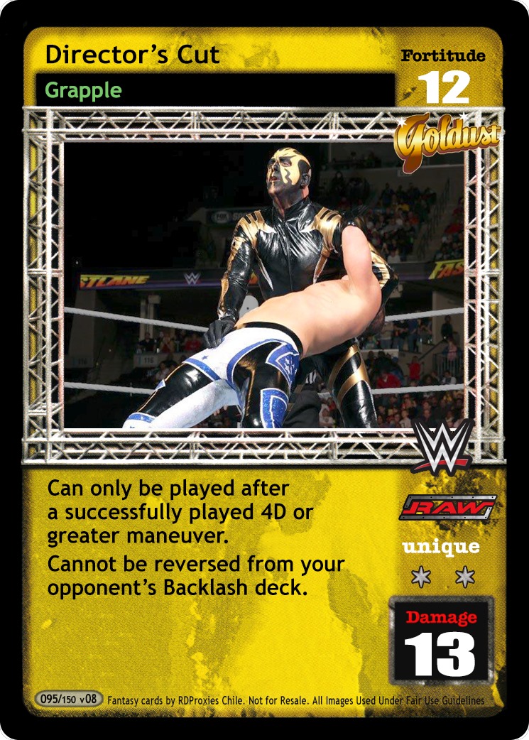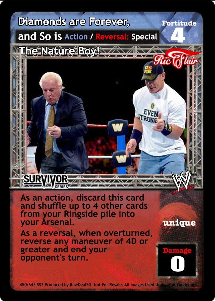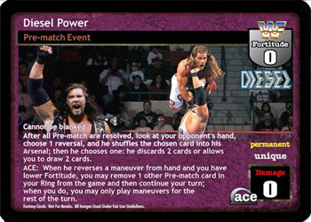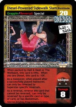 When packed by Hall and Nash or The Wolfpack, this card is nWo. When you are Diesel, this card is -10F. As a maneuver, when played after a successfully played maneuver, can only be reversed by Superstar-specific reversals. As a reversal, reverse any card that cannot be reversed, 'can only be reversed' by a specific card or type of card, or has Momentum.