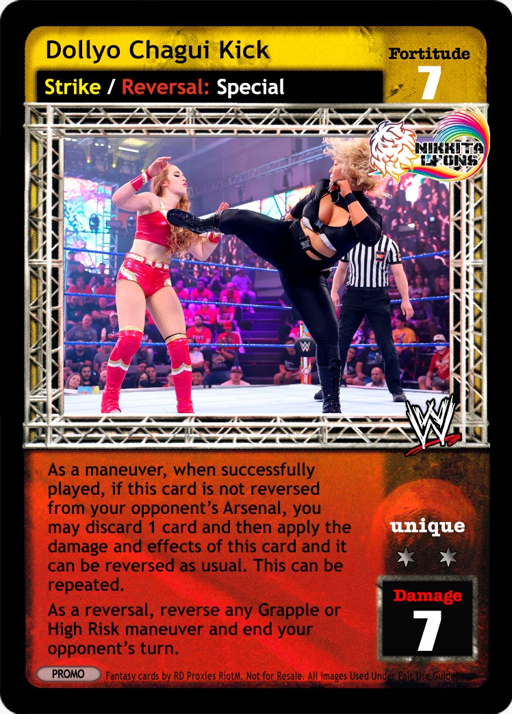 As a maneuver, when success u y played, if this card is not reversed from your opponent's Arsenal, you may discard 1 card and then apply the damage and effects of this card and it can be reversed as usual. This can be repeated. As a reversal, reverse any Grapple or High Risk maneuver and end your opponent's turn.
