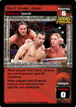 When played from hand, reverse any non-Superstar-specific maneuver. When played from Ringside, reverse any non-Superstar-specific non-maneuver.