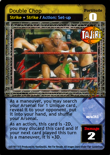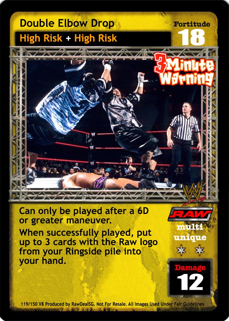 Can only be played after a 6D or greater maneuver. When successfully played, put up to 3 cards with the Raw logo from your Ringside pile into your hand.