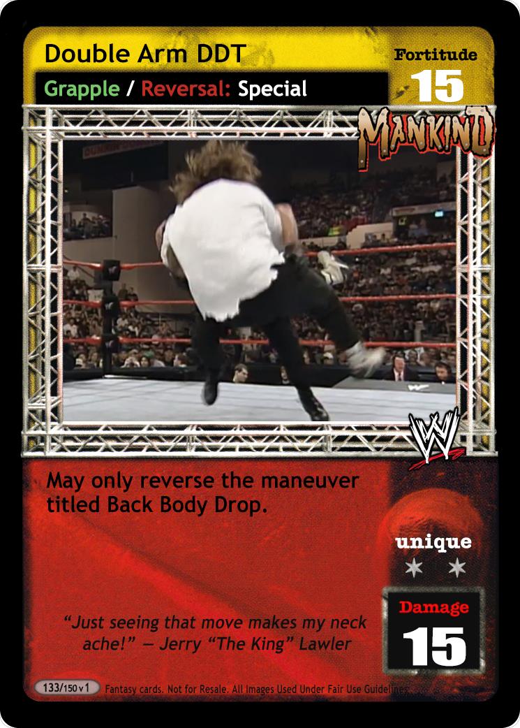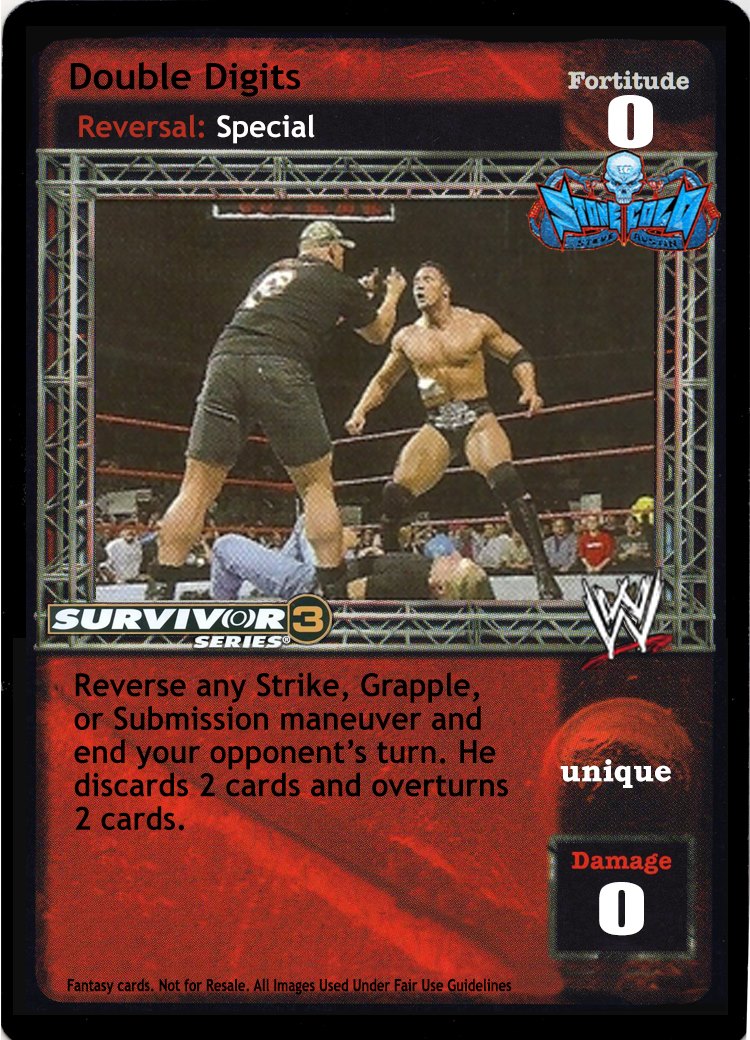 Reverse any Strike, Grapple, or Submission maneuver and end your opponent's turn. Your opponent discards 2 cards and overturns 2 cards.